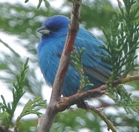 So, this mega rarity appeared whilst I was still at the previous location photographing the warblers and flycatchers, but the fact that it was only viewable by entering the garden owner’s house put me off somewhat! I was also tired after what had been a long day out in the sun and couldn’t face the hour’s drive to the coast… This proved to be the wrong decision. I woke early the next morning (19th) and decided to go for it hoping the bird had stayed overnight. Arriving at 8am, after a 90-mile drive, the signs did not look good: negative news on Birdguides and a line of disgruntled twitchers looking at their phones. I hung around growing increasingly concerned that my recent run of good luck had come to an end. Time passed with no sign of the bird. I showed a vague interest as others around me pointed out where it had been seen last, its favourite perches and how my birding colleagues had had crippling views the day before… Oh dear. This was painful. 9am, 10am, 11am came and went; it was time to accept defeat and I headed home. This was the biggest blow I had experienced for a while; it felt worse than the Black-browed Albatross calamity. But far worse was to come: having had lunch and drowned my sorrows in wine, I contemplated whether I should now check Birdguides… I couldn’t resist, could I? I took a peek…The ‘red blob’ was back on the map!! You’ve got to be kidding me. The bird had just re-appeared. Now what? Well, it only took me a few minutes to make a decision. I got back in the car, and drove all the way back to Whitburn, just east of Newcastle, rediscovered the back alley, which felt strangely familiar (!), and encountered other birders punching the air and with big smiles on their faces. Of course, the bird had just flown off, hadn't it?! – minutes before I arrived… But I stayed calm, as others seemed hopeful it would reappear. And sure enough, after about 10 minutes or so, there was a commotion nearby, as a dozen or so birders raised their bins and huddled next to each other to clap eyes on what had to be the bird we’d all come to see. Moments later, I had muscled my way through the crowd and could now see, through my own binoculars, the distinctive cobalt blue of the mega in question: a first-summer male Indigo Bunting! Huge relief, joy, wonder… so many feelings. This wasn’t just your ‘bog-standard’ non-descript juvenile either; this was an absolute corker. No, the initial views weren’t ideal (the bird was partially obscured, and I was constantly jostled by those around me), but I had the bird in my sights and there was no doubting its identity. Yes, yes, yes! Over the course of the next few hours, I raced around the housing block, round the nearby allotments, up and down the alleyway, past the local cemetery… as the bird flew from one area to another, popping up here and there, but never anyway especially accessible or open for photography. Still, I had seen it now and any shots I might get, no matter how poor, would be a bonus. And, given the circumstances and its elusive nature, I came away with more than just record shots. Yes, others had got far better images, but my own just about did the bird justice (thanks to my new camera’s eye-focussing technology). What a bird! It had been a mad day from start to finish – 12 hours of chaos and extreme emotions. But at least this time, for the second time, I could return home with a grin on my face, thrilled that I’d connected with the ultra-mega. Here’s hoping now that it gets accepted by the notorious rarities committee…!